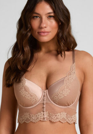 Midnight lace, energie van de hoofdpersoon. Deze niet-voorgevormde donkerblauwe kanten bh staat voor moeiteloze elegantie met een zwoele touch. Het delicate kant voegt een romantisch tintje toe, terwijl de unieke sluiting aan de voorkant hem een gedurfde, trendy uitstraling geeft. Zacht op de huid en perfect voor wie ervan houdt een kledingstuk met maximale impact toch nauwelijks te voelen. Of hij nu onder een blouse uitsteekt of afzonderlijk opvalt, deze bh is een echte stemmingmaker. Niet voorgevormd Verstelbare schouderbandjes Met beugel Afneembare ketting Kant Voorsluiting