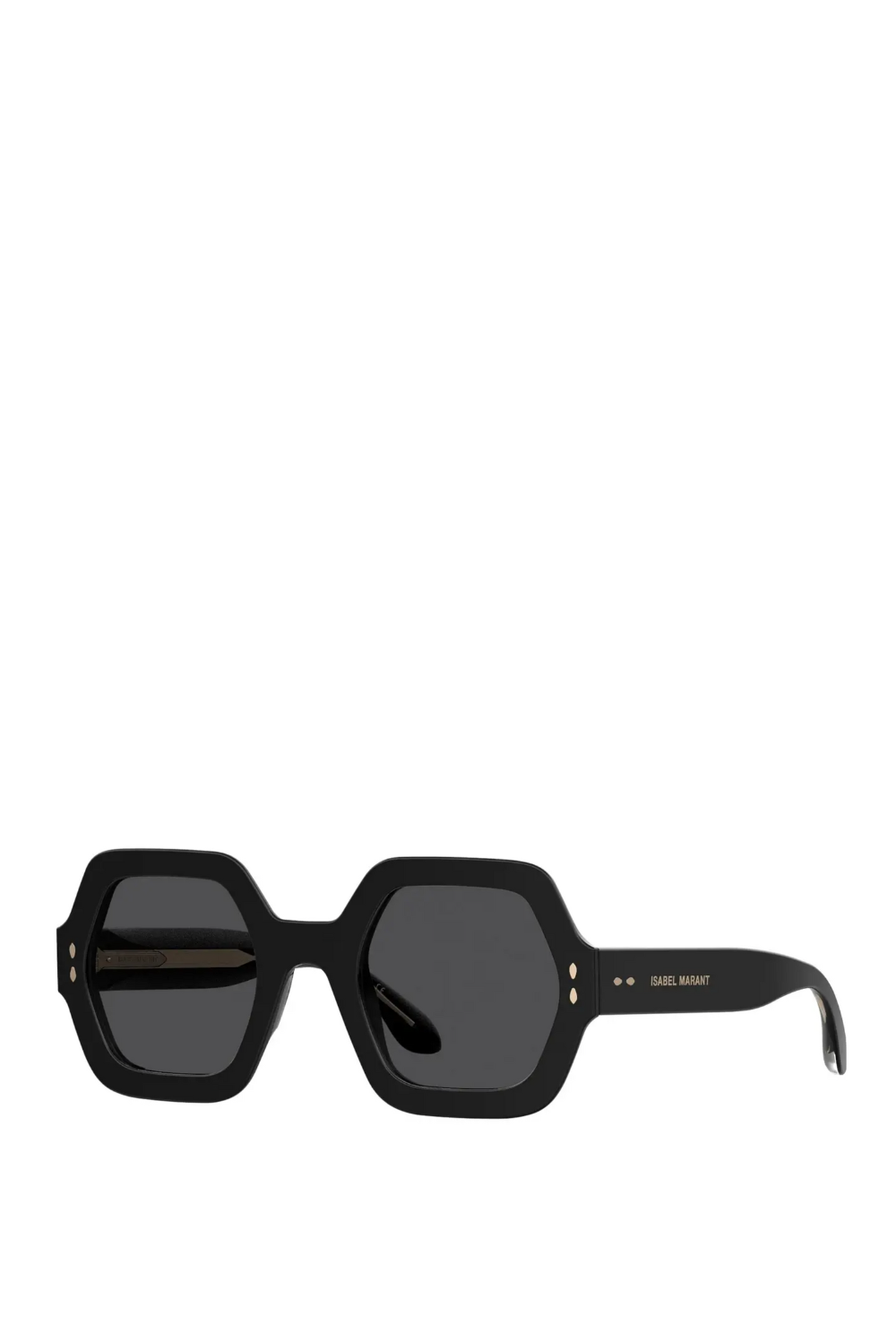 Hier zie je de zonnebril black van Isabel Marant met een strak zeshoekig montuur dat meteen helder staat. De vorm voelt stevig en licht tegelijk, met donkere glazen die het gezicht volledig beschutten. De goudkleurige accenten bij de scharnieren geven het montuur een subtiele glans zonder te overdrijven. Het zwarte frame heeft een glad oppervlak dat prettig in de hand ligt. Deze zonnebril sluit mooi aan langs de slapen en blijft stabiel zitten. Isabel Marant brengt hiermee haar kenmerkende mix van Franse flair en een vrije stijl samen in een helder vormgegeven accessoire.