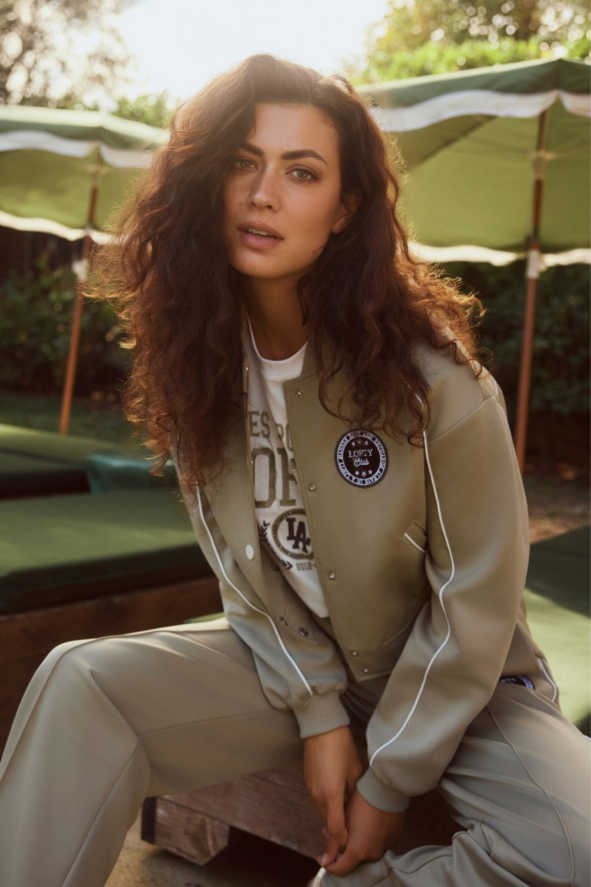Materiaal: 92% polyester, 8% elastaan Model en fit: Het model is 1.76m en draagt maat XS. De maat valt normaal Lengte jacket: 53 cm bij maat S Jacket Maia is een kort groen baseball jasje. Het groene jasje heeft een smock tailleband, opstaande ribkraag, steekzakken en drukknopen. Verder heeft het baseball jasje een patch op de borst. Het groene jasje is qua pasvorm losvallend.