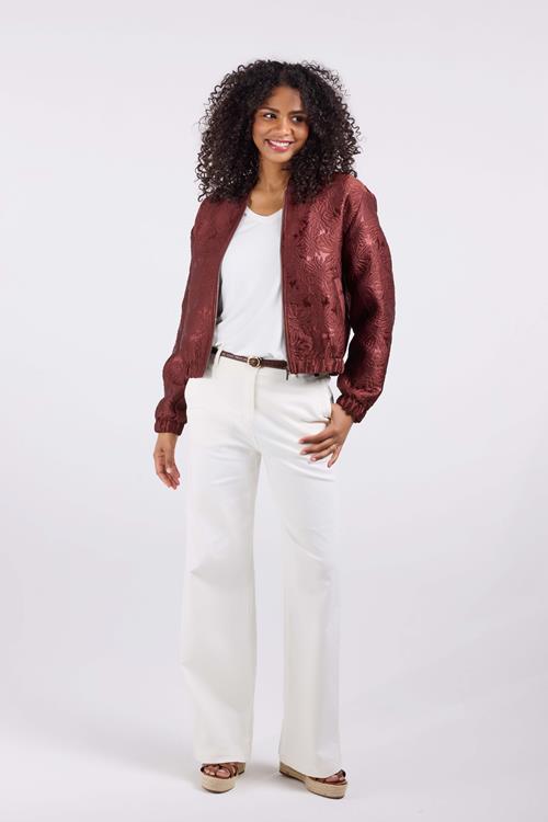 Jacquard bomber Lora Brown Flower jacquard: Jouw Voorjaar Must-Have Maak kennis met de Jacquard bomber Lora Brown Flower jacquard. Deze beige en bruine jas is een ware blikvanger. Gemaakt met een rechte regular fit, biedt het een ontspannen maar stijlvolle uitstraling. De ronde hals en lange mouwen maken het geschikt voor de koelere lentewerkuren, terwijl de ritssluiting aan de voorkant gemakkelijk comfort en gebruiksgemak biedt. Laat het elastiek in de zoom je silhouet flatteren, ongeacht de gelegenheid. Gemaakt van hoogwaardige stof Deze bomberjack is gemaakt van 100% polyester, een stof die bekend staat om zijn duurzaamheid en kreukbestendigheid. Polyester biedt bovendien een lichte feel, ideaal voor de overgangsseizoenen wanneer een zwaardere jas te warm is. Het jacquard weefsel geeft de jas een luxueuze uitstraling, terwijl het toch eenvoudig te onderhouden blijft. Stijladvies Draag de Jacquard bomber Lora Brown Flower jacquard met vertrouwen en stijl. Combineer het met een lekkere broek of je favoriete jeans voor een casual, maar chique look. Voeg een paar sneakers of laarsjes toe en je bent klaar voor zowel een lunch met vrienden als een dag op kantoor. Wasvoorschrift Wassen: Houd je jas in topconditie door hem op 30 graden te wassen. Droogvoorschrift: Vermijd de droger om krimpen en schade te voorkomen. Strijkvoorschrift: Als het nodig is, strijk dan op een lage temperatuur voor een gladde afwerking. Geef jouw garderobe een frisse upgrade met deze prachtige jas en ervaar zelf de veelzijdige charme van de Jacquard bomber Lora Brown Flower jacquard.