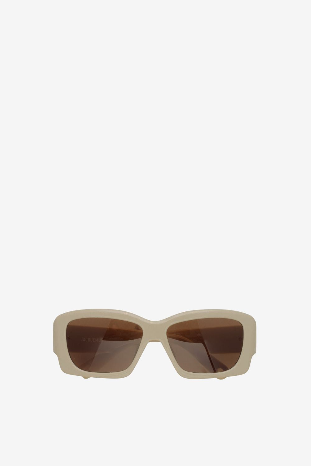 De zonnebril Croisiere brown van Jacquemus heeft iets opvallend strak. De rechthoekige glazen met lichte bolling zijn omlijst door een dikke, crèmekleurige rand die direct structuur geeft aan je gezicht. De donkerbruine glazen zorgen voor een sterk contrast met het lichte montuur en houden de zon goed tegen. Samen vormt het een ontwerp dat net zo opvallend staat op straat als op een zonnig terras. Combineer de Croisiere brown gerust met de Jacquemus zonnebril Croisiere JAC60C6SUN yellow voor een speelse afwisseling in je accessoirescollectie.