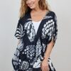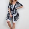 Kaftan Yassina in Black with Shell Symphony XXL Print Ervaar de elegantie en het comfort van de Kaftan Yassina in Black with Shell Symphony XXL Print. Gemaakt van 100% viscose, voelt deze kaftan licht en soepel aan op je huid, ideaal voor zonnige dagen. De zwart/grijze kleurcombinatie en de opvallende shell print maken het een echte eyecatcher. Het ruime, luchtige model biedt niet alleen draagcomfort, maar is ook perfect voor een stijlvolle en ontspannen uitstraling. Laat je omhullen door de moeiteloze charme van deze unieke kaftan. Stijladvies De Kaftan Yassina in Black with Shell Symphony XXL Print is een veelzijdig kledingstuk dat je op verschillende manieren kunt dragen. Draag het los voor een casual look, of combineer het met een riem om je taille te accentueren voor een meer gedefinieerde stijl. Perfect te combineren met lichte accessoires, sandalen of zelfs hakken voor een avondje uit. Dit item past naadloos in je kledingkast en voegt een frisse, modieuze draai toe aan je alledaagse looks. Wasvoorschrift Wasvoorschrift: Was de kaftan op een fijnwasprogramma op maximaal 30 graden om de kwaliteit van de viscose te behouden. Droogvoorschrift: Hang het kledingstuk uit om te drogen. Vermijd de droger om krimp en beschadiging te voorkomen. Strijkvoorschrift: Strijken kan op lage temperatuur indien nodig. Draai het kledingstuk binnenstebuiten om de print te beschermen. Met deze richtlijnen blijft je Kaftan Yassina in Black with Shell Symphony XXL Print er als nieuw uitzien, klaar voor elke gelegenheid waar comfort en stijl samenkomen.