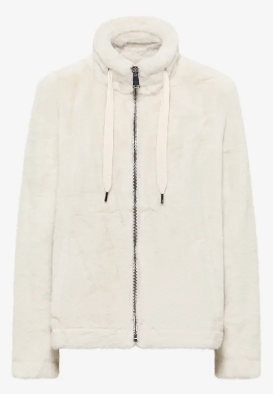 Deze korte jas van CECIL voor dames maakt indruk met zijn behaaglijke stof van imitatiebont en sportieve details. Een opstaande kraag met tunnelkoord, steekzakken met verborgen drukknoop en een tunnelkoord in de zoom zorgen voor comfort en functionaliteit. Ideaal voor gezellige winterdagen met een vleugje nonchalance.