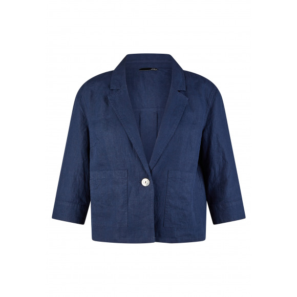 Linnen blazer van het merk Le Comte. Deze blazer valt wat korter, heeft een rever kraag en een enkele knoopsluiting. Een mooie blazer op bijvoorbeeld deze print broek (https://www.kamstmode.nl/broeken/lange-broeken/broek-print_12).