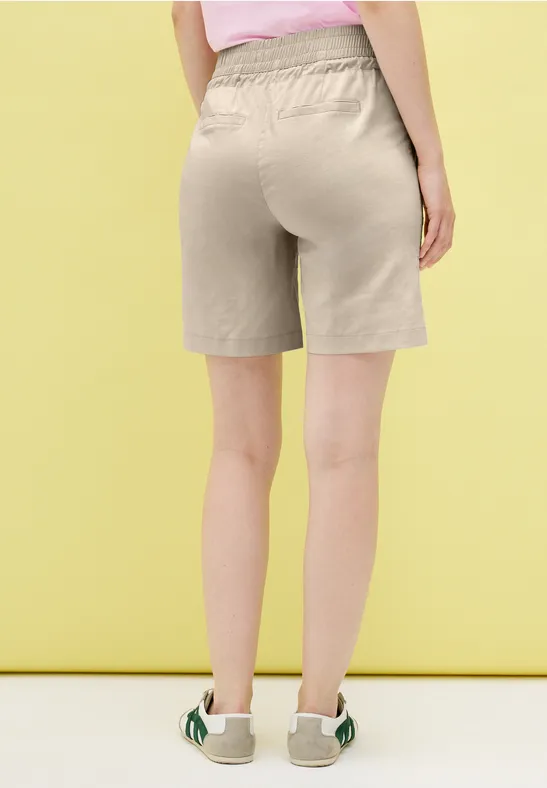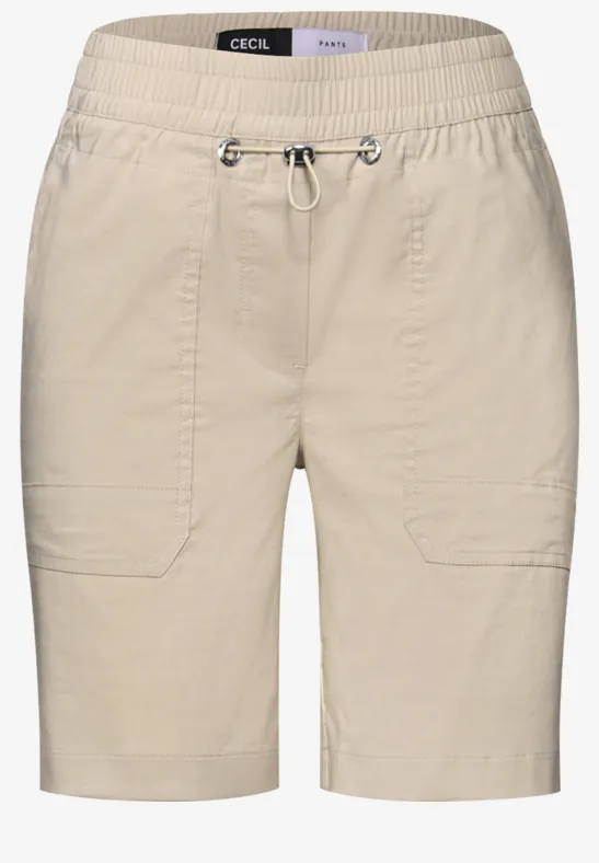 Deze Loose Fit shorts van CECIL voor dames hebben een elastische tailleband met een aantrekkoord, steekzakken en Straight Legs voor een zomerse, casual look. De katoenmix met stretch zorgt voor bewegingsvrijheid. De Chelsea stijl broek is perfect voor warme dagen.