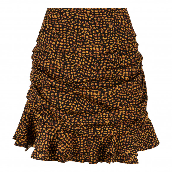 Gesmockt allover animal print rokje van het merk Lofty Manner. De lengte van de rok is net boven de knie.