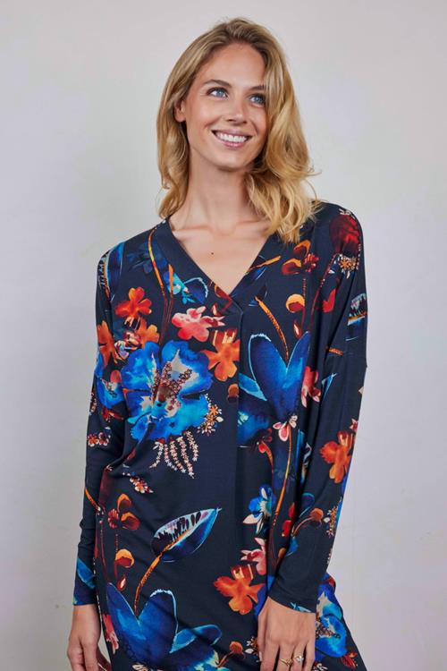 Loose dress Indy print Dark blue Waterside M print