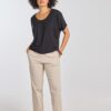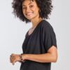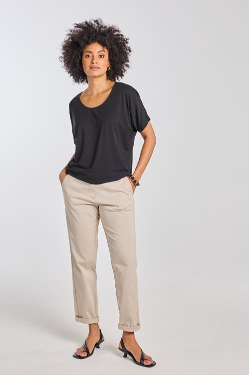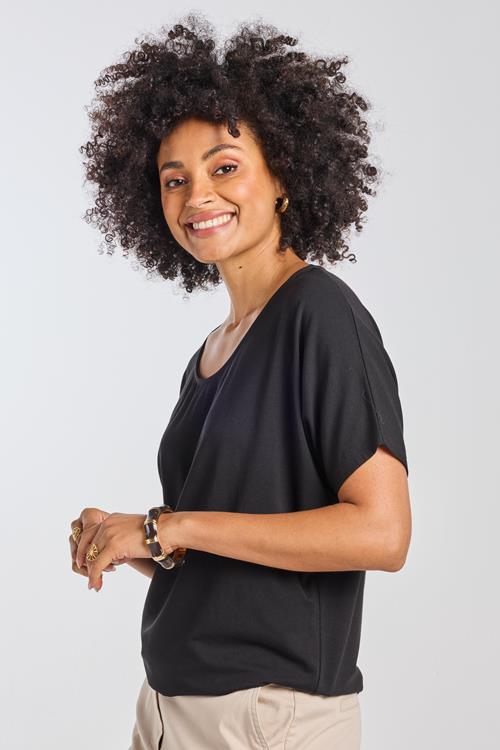 Loose tee Flow Black Stel je voor dat je elke dag opnieuw het ultieme gevoel van comfort en stijl kunt ervaren. De Loose tee Flow Black is precies dat kledingstuk dat je helpt die belofte waar te maken. Deze top combineert een tijdloze zwarte/grijze kleur met een moderne twist dankzij de ronde hals en korte mouwen. Het loose fit model zorgt ervoor dat je er altijd moeiteloos en elegant uitziet, perfect voor elk moment! Gemaakt van hoogwaardige stof Dit T-shirt is vervaardigd uit een mix van 95% viscose en 5% elasthan, wat zorgt voor een luxueuze zachtheid en een lichte stretch. Viscose biedt een subtiele glans en ademt goed, zodat je je fris voelt. De toevoeging van elasthan geeft je net dat beetje extra flexibiliteit. Stijladvies De Loose tee Flow Black is veelzijdig en kan eenvoudig worden gecombineerd met verschillende outfits. Draag het met een mooie jeans voor een casual look. Of kies voor een elegante rok om het wat chiquer te maken. De subtiele kleuren maken het de perfecte partner voor vrijwel elke stijl. Wasvoorschrift Wasvoorschrift: Zorg ervoor dat je dit kledingstuk op 30 graden wast om de kwaliteit van de stof te behouden. Droogvoorschrift: We raden aan om het niet in de droger te doen. Strijkvoorschrift: Strijk op een lage temperatuur om de vorm en zachtheid te behouden.
