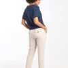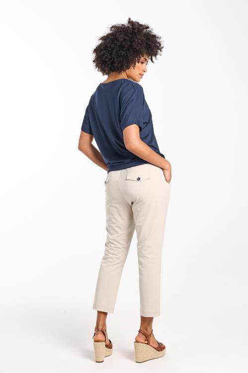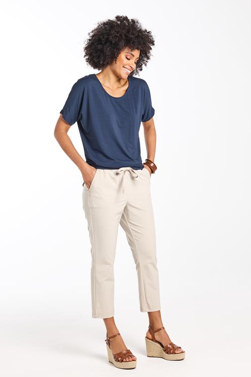 Loose tee Flow Dark blue: Jouw Perfecte Ontspannen Look De Loose tee Flow Dark blue is de ultieme aanvulling voor een ontspannen, stijlvolle garderobe. Met een frisse blauwe tint en een losse pasvorm die ademt en beweegt met elke stap, ben je altijd klaar om te stralen. Het korte model en de ronde halslijn zorgen voor een nonchalante en toch verfijnde uitstraling, perfect om in stijl comfortabel te blijven. Laat je verleiden door de luchtige mouwen en het soepele gevoel op de huid, en geniet van het iconische draagcomfort. Gemaakt van hoogwaardige stof Deze tee is vervaardigd uit een zachte mix van 95% viscose en 5% elasthan. De viscose zorgt voor een zijdeachtig gevoel en geeft het materiaal een luxueuze uitstraling, terwijl de elasthan een vleugje stretch toevoegt voor extra draagcomfort. Dit materiaal ademt goed en houdt je lichaam perfect op temperatuur, of je nu binnen of buiten bent. Stijladvies Combineer de Loose tee Flow Dark blue moeiteloos met een mooie jeans voor een casual, maar toch elegante look. Voeg wat opvallende accessoires toe en je outfit is compleet. Perfect voor zowel een dagje winkelen als een avondje uit met vrienden. Wasvoorschrift Wasvoorschrift: Was de tee op een zachte cyclus van 30 graden om de frisheid te behouden en de stof te beschermen. Droogvoorschrift: Vermijd drogen in de droger. Laat het kledingstuk aan de lucht drogen voor het beste resultaat. Strijkvoorschrift: Strijken kan op lage temperatuur om de stof mooi glad te houden zonder de textuur te beschadigen. Met de Loose tee Flow Dark blue maak je altijd een stijlvolle indruk. Voeg deze veelzijdige, nooit te missen favoriete tee toe aan je collectie en geniet van het ultieme comfort en de tijdloze stijl.