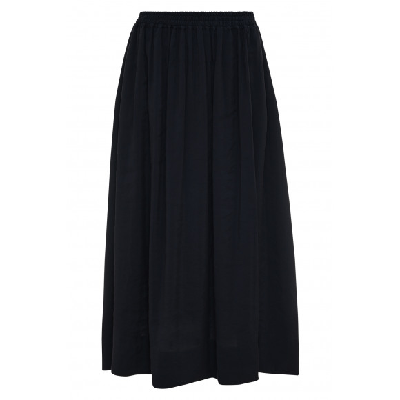 Rok van het merk Maicazz. Deze elegante rok in een diepe navy kleur heeft een tijdloze en veelzijdige uitstraling, perfect voor zowel casual als geklede momenten. De rok is uitgevoerd in een soepelvallende stof die mooi langs het lichaam valt en zorgt voor een vrouwelijke, zwierige look. De elastische tailleband biedt extra draagcomfort en maakt de rok eenvoudig aan te trekken. Dankzij de midi-lengte is dit een stijlvol item dat gemakkelijk te combineren is.