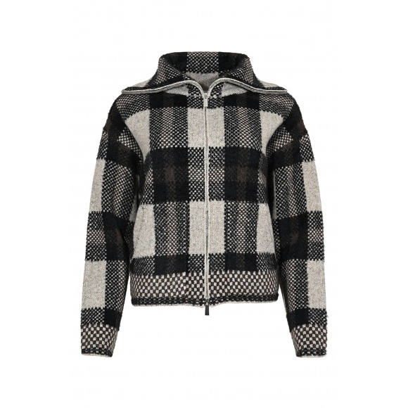 * Details: ruitdessin in warme tinten, dubbele ritssluiting, geribde afwerking aan kraag en zoom