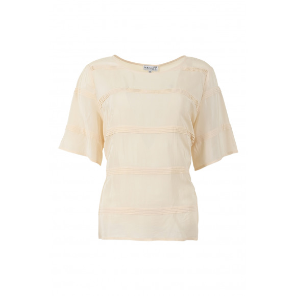 Blouse met plisse streep dessin van het merk Maicazz. Deze top heeft een ronde hals en het korte mouwtje valt wat wijder.