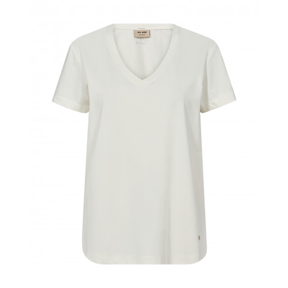T-shirt van Mos Mosh. Dit tijdloze T-shirt met V-hals is een echte garderobe-essential. De zachte katoenkwaliteit met een vleugje stretch zorgt voor een heerlijk draagcomfort, terwijl de subtiele branding op de rug een verfijnd detail toevoegt. Dankzij de iets relaxte pasvorm valt het shirt soepel om het lichaam.