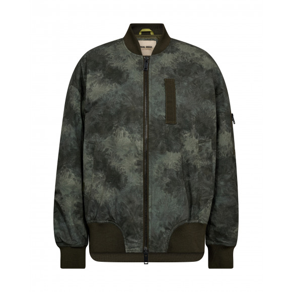 Bomberjack van Mos Mosh. Dit eigentijdse bomberjack heeft een stoere, vrouwelijke uitstraling dankzij de subtiele tie dye print in groentinten. De elastische boorden en ritsluiting zorgen voor een comfortabele pasvorm met een sportieve twist. Gemaakt van een soepele, lichtgewicht stof die perfect is voor het tussenseizoen.