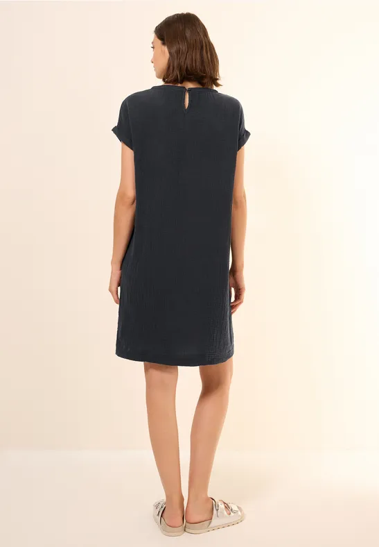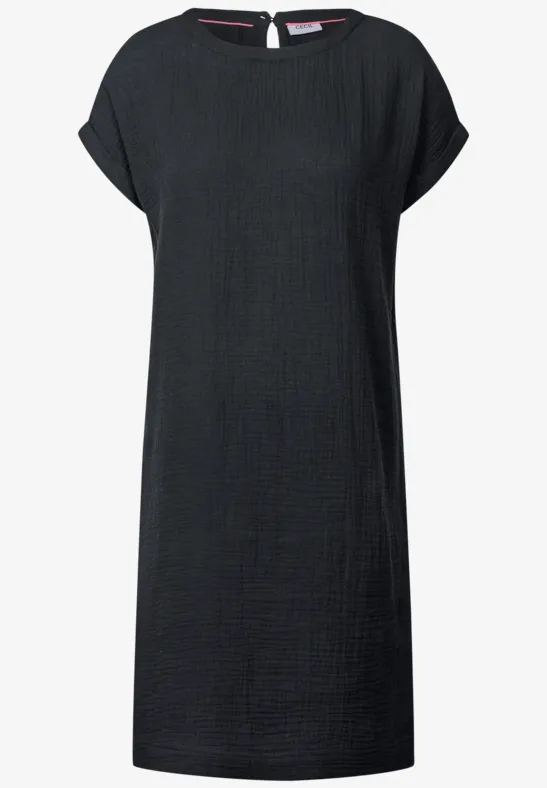 Deze korte mousseline jurk van CECIL voor dames zal je bekoren met zijn zachte katoenkwaliteit. De boothals met split en knoop op de rug geven hem een bijzondere touch. Een veelzijdige allrounder die comfortabel en stijlvol gecombineerd kan worden.