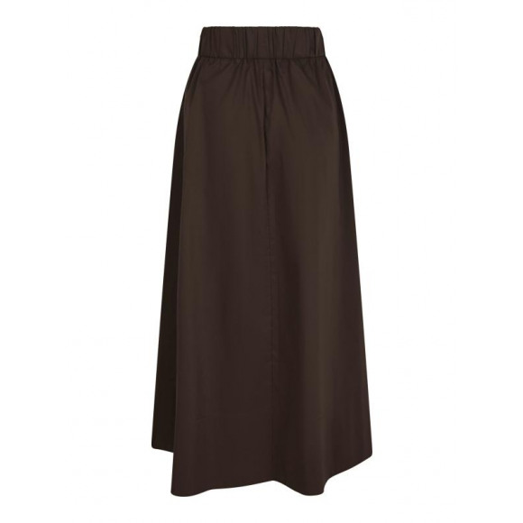Rok van Neo Noir met een elegante, vloeiende look en een comfortabele pasvorm. Deze lange rok is uitgevoerd in een diepe donkerbruine en army tint en valt mooi soepel langs het lichaam, waardoor hij zowel casual als gekleed te dragen is. De elastische tailleband zorgt voor extra draagcomfort en een relaxte uitstraling.