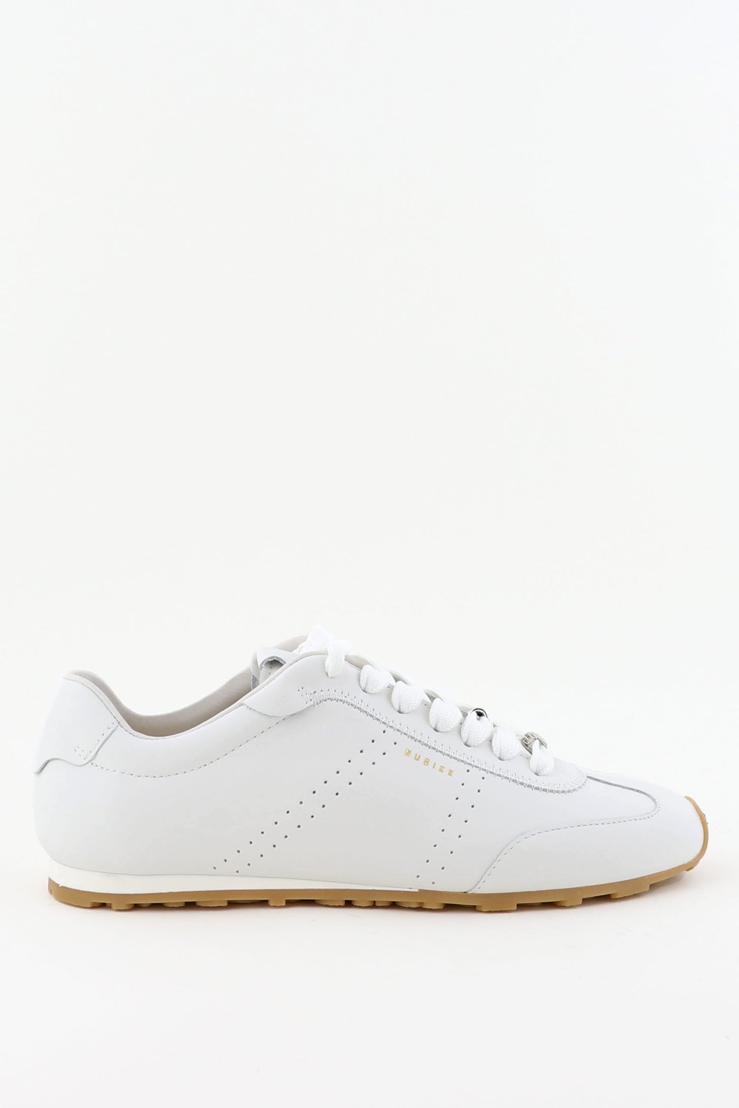 Hier zie je de sneakers Billy Lou van Nubikk, een strakke witte sneaker met een lichte, contrasterende zool. De geperforeerde diagonale lijnen aan de zijkant geven het leer een subtiel reliëf. Aan de andere kant zie je kleine gouden letters op het white leather die het ontwerp extra detail geven. Het leer voelt stevig en soepel tegelijk, waardoor de vorm mooi blijft. De zool is licht en geeft de sneaker een rustige hoogte. Ze vallen normaal op maat, dus je kunt je eigen maat aanhouden. Nubikk staat bekend om hun vernieuwende ontwerpen en dat zie je hier goed terug.