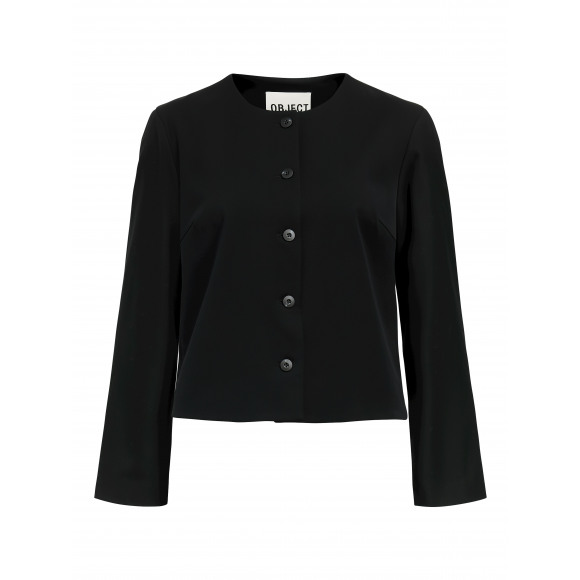 Jasje van het merk Object. Dit stijlvolle zwarte jasje heeft een minimalistisch design met een ronde hals en knoopsluiting aan de voorzijde. De rechte pasvorm en lange mouwen geven het jasje een tijdloze en veelzijdige uitstraling, ideaal voor zowel casual als geklede looks. Gemaakt van een soepele stof die comfortabel draagt en mooi valt.