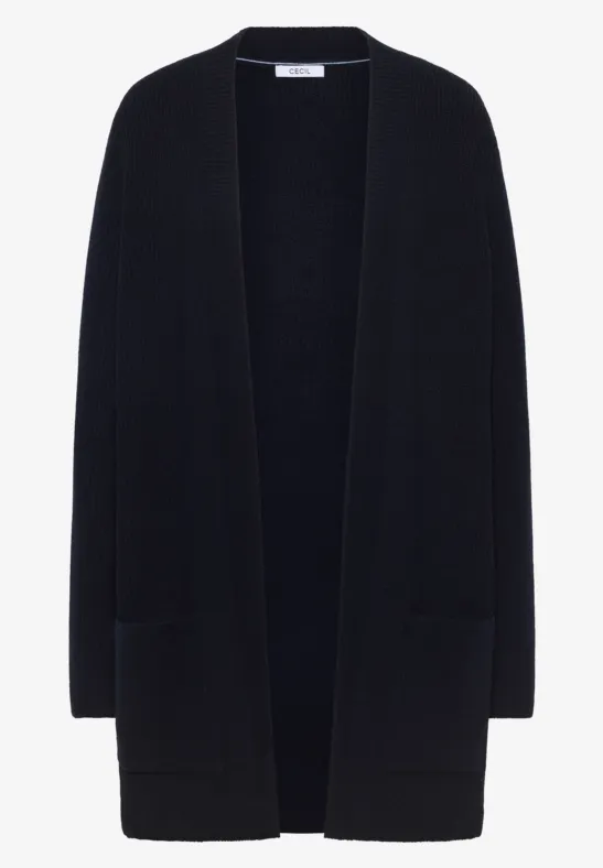 Dit open vest van CECIL voor dames heeft een fijne textuur en een casual snit. Opgestikte zakken en een zachte katoenmix met stretch maken het tot een knus laagjesvest. Een ongecompliceerde metgezel voor gezellige looks.