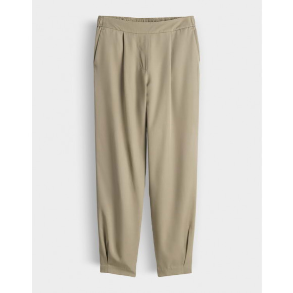 Broek van Opus in een zachte groen tint met een comfortabele en stijlvolle uitstraling. De luchtige stof en elastische tailleband zorgen voor een moeiteloze fit, terwijl de subtiele plooien en taps toelopende pijpen het geheel een verzorgde, moderne look geven.