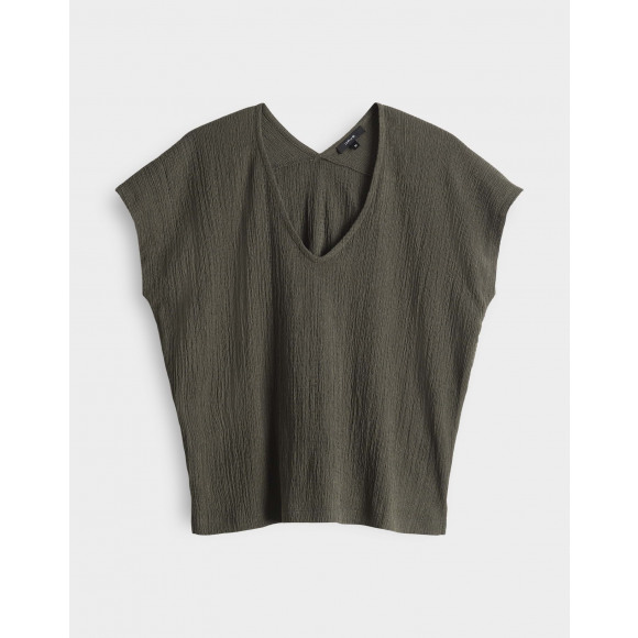 Crinkle top met korte mouw en dubbele v-hals van het merk Opus.
