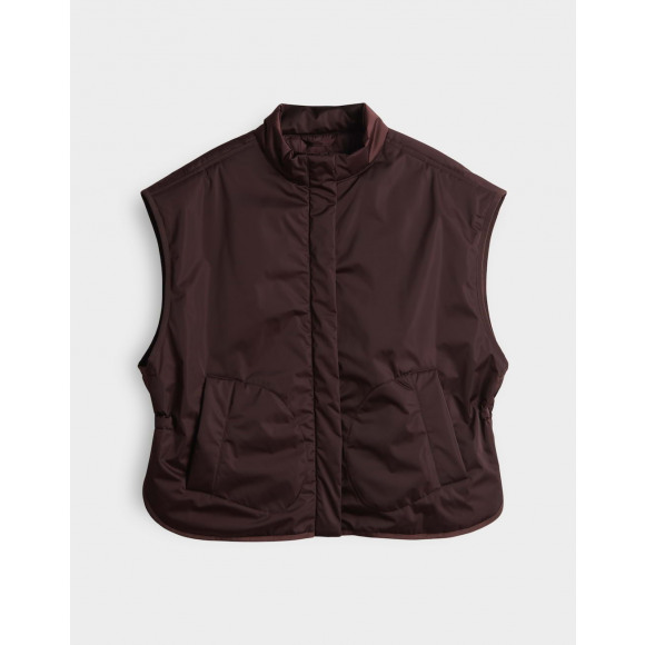 Bodywarmer van Opus. Deze bordeauxrode gewatteerde bodywarmer is een trendy en functionele toevoeging aan je garderobe. Dankzij het lichtgewicht materiaal en de comfortabele pasvorm is dit item perfect om in laagjes te dragen tijdens frisse dagen.