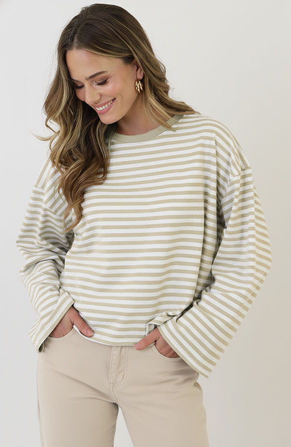 Deze oversized gestreepte top is een echte everyday essential. Gemaakt van zacht katoen voor optimaal draagcomfort en een luchtige fit. De neutrale strepen geven de top een rustige, tijdloze uitstraling die moeiteloos te combineren is.Sizes: ONE SIZE, suitable for ladies with sizes S(36), M(38), L(40) Fit: valt oversizedModel: 178 cm and wears size One SizeDetails: ronde hals, lange mouwen and gestreept patroon Material: 100% KatoenWashing instructions: 30 graden wasmachineFor best results: niet in de droger, geen wasverzachter