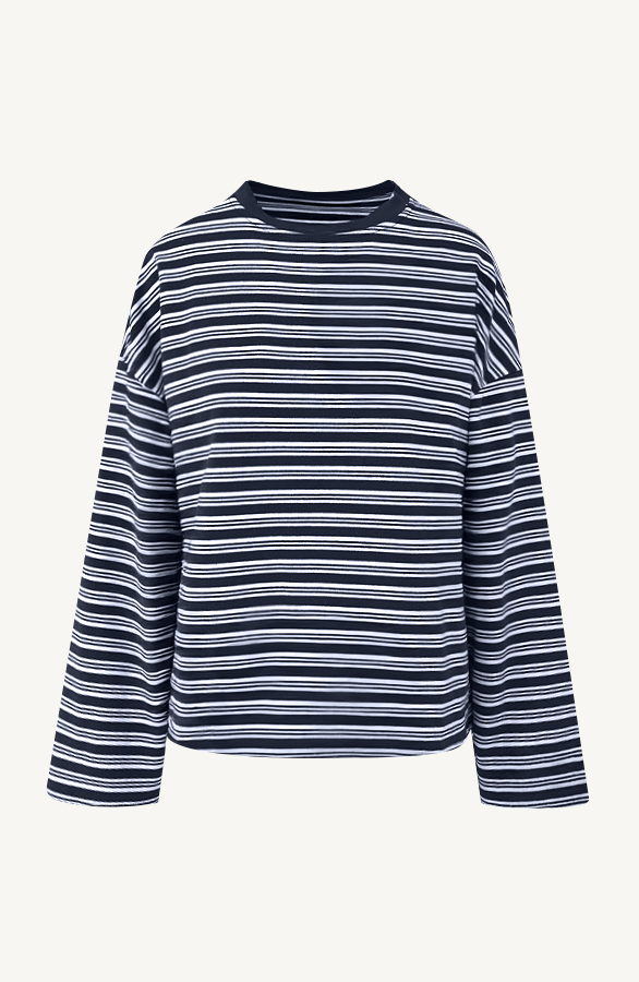 Oversized Gestreepte Katoenen Top Multi Navy