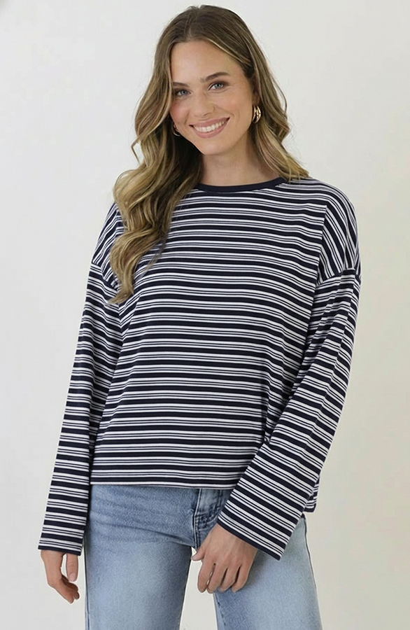 Deze oversized gestreepte top is een echte everyday essential. Gemaakt van zacht katoen voor optimaal draagcomfort en een luchtige fit. De neutrale strepen geven de top een rustige, tijdloze uitstraling die moeiteloos te combineren is.Sizes: ONE SIZE, suitable for ladies with sizes S(36), M(38), L(40) Fit: valt als normaalDetails: ronde hals, lange mouwen and gestreept patroon Materials: 25% Polyester, 5% Elastaan, 70% KatoenWashing instructions: 30 graden wasmachine, wij adviseren om dit item te wassen in een waszak.For best results: niet in de droger, geen wasverzachter
