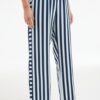 Stijlvol Comfort met de Pants Paloma Offwhite Blue Stripe Bereid je voor op een seizoen vol frisheid en gemak met de Pants Paloma Offwhite Blue Stripe. Deze lange broeken met een sprankelende witte en blauwe print zijn perfect voor een luchtige en zorgeloze look. De wide leg-pasvorm gecombineerd met een elastische tailleband en koord zorgt voor ultiem comfort en stijl, waardoor je gemakkelijk van een zakelijke bijeenkomst naar een ontspannen avond kan gaan. Gemaakt van hoogwaardige stof Gemaakt van 87% rayon en 13% nylon, biedt deze stof combinatie zachtheid en duurzaamheid in één. Rayon zorgt voor een soepele en zijdeachtige textuur die prettig aanvoelt op de huid, terwijl nylon bijdraagt aan de stevigheid en de vormbehoud van de broek. Ideaal voor de warmere dagen, deze broek biedt de luchtigheid die je zoekt maar behoudt toch zijn klasse. Stijladvies Wil je een complete outfit creëren? Combineer deze prachtige broek met een leuke blouse, en je bent klaar om de deur uit te gaan. Of je nu kiest voor een effen of een gedessineerde blouse, de blauw-witte streep biedt veelzijdigheid en modieuze flair. Voeg hier wat eenvoudige accessoires aan toe, en je hebt de perfecte balans tussen casual en chique. Wasvoorschrift Wasvoorschrift: Om de kleur en kwaliteit te behouden, was je de broek op 30 graden. Droogvoorschrift: Vermijd de droger om het materiaal te beschermen. Hang de broek liever op in de schaduw. Strijkvoorschrift: Voor een kreukvrije look strijk je de broek op een lage temperatuur. Vergeet niet dat bleken en chemisch reinigen afgeraden worden om de kwaliteit van de stof optimaal te behouden. Dus waarom wachten? Met de Pants Paloma Offwhite Blue Stripe voeg je eenvoudig een stijlvol en comfortabel element toe aan je garderobe.