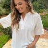 Poppy V-Neck Top Ecru