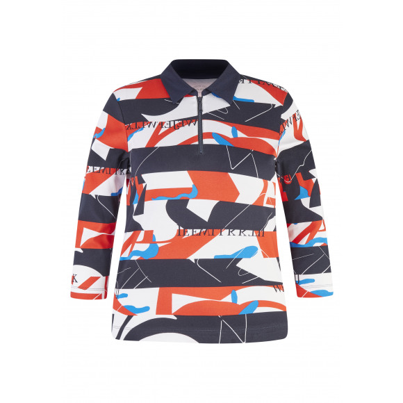 Polo met allover print van het merk Rabe. Deze polo heeft een kraagje en v-halsje met ritsje en een korte mouw.
