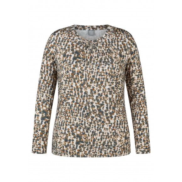Top van Rabe. Deze top met allover stippenprint in warme aardetinten is een speelse en stijlvolle aanvulling op je garderobe. De zachte, elastische stof en de subtiele plooitjes bij de hals zorgen voor een comfortabele en flatterende pasvorm. Dankzij de lange mouwen is dit item ideaal voor het tussenseizoen en gemakkelijk te combineren.
