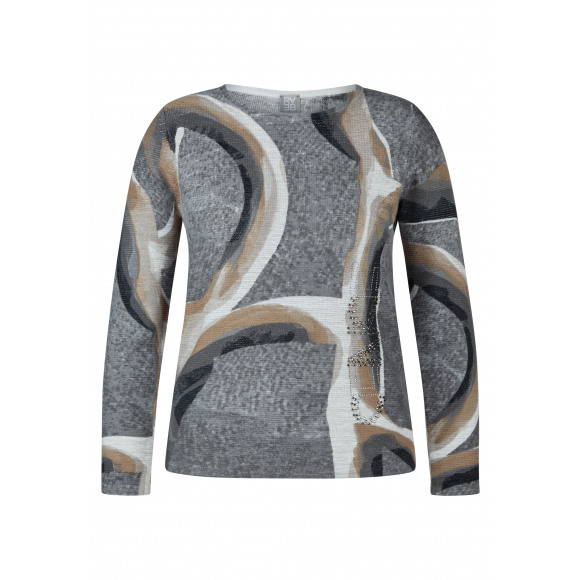 Trui van Rabe. Deze trui met abstracte print in grijs- en bruintinten is een moderne en stijlvolle keuze voor je dagelijkse garderobe. Het model heeft een recht vallende pasvorm en een ronde hals. Subtiele strassdetails aan de voorzijde geven het item een vleugje elegantie. Dankzij de elastische stof draagt de trui heerlijk comfortabel.