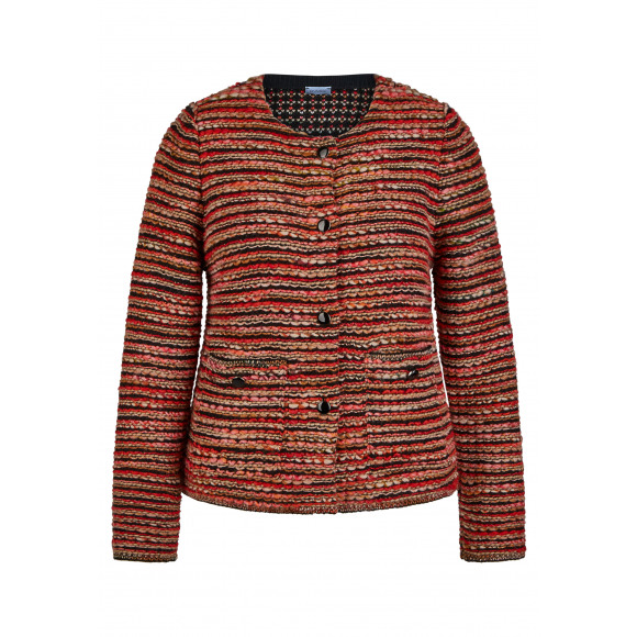 Boucle vestje van het merk Rabe. Dit vestje is te dragen als een blazer. Draag hem bijvoorbeeld open met een mooie top op een pantalon. Dit vestje heeft een ronde hals en knoopsluiting.