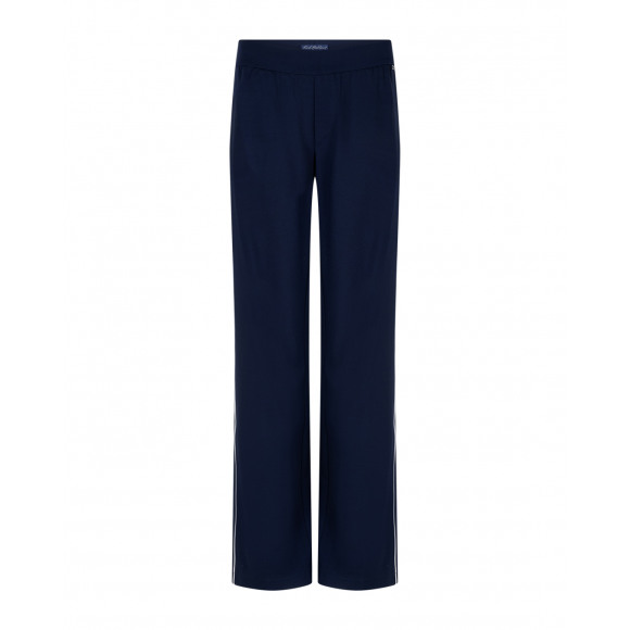 Broek van Red Button. Deze donkerblauwe broek is zo’n fijne basis met nét dat beetje extra. De sportieve bies langs de zijkant geeft een moderne twist, terwijl de soepele stof en comfortabele tailleband zorgen dat je ‘m de hele dag heerlijk draagt. Perfect voor een casual look, maar ook supermakkelijk door te stylen naar chic.