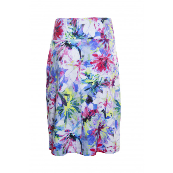 Een iets gerende rok met allover bloemenprint van het merk Roberto Sarto. Deze rok heeft een elastische boord en is gemaakt van een soepele viscose mix.