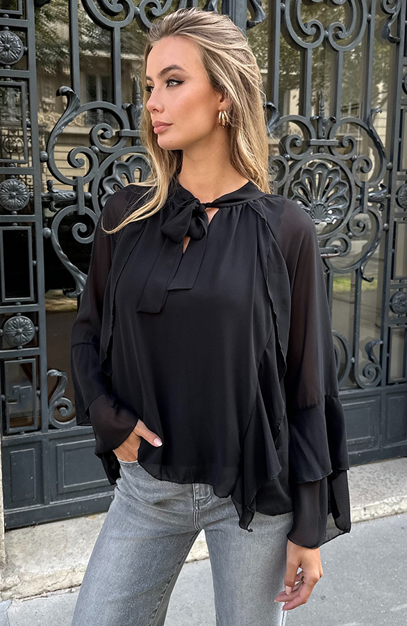 Ruffle Elegance Blouse Zwart