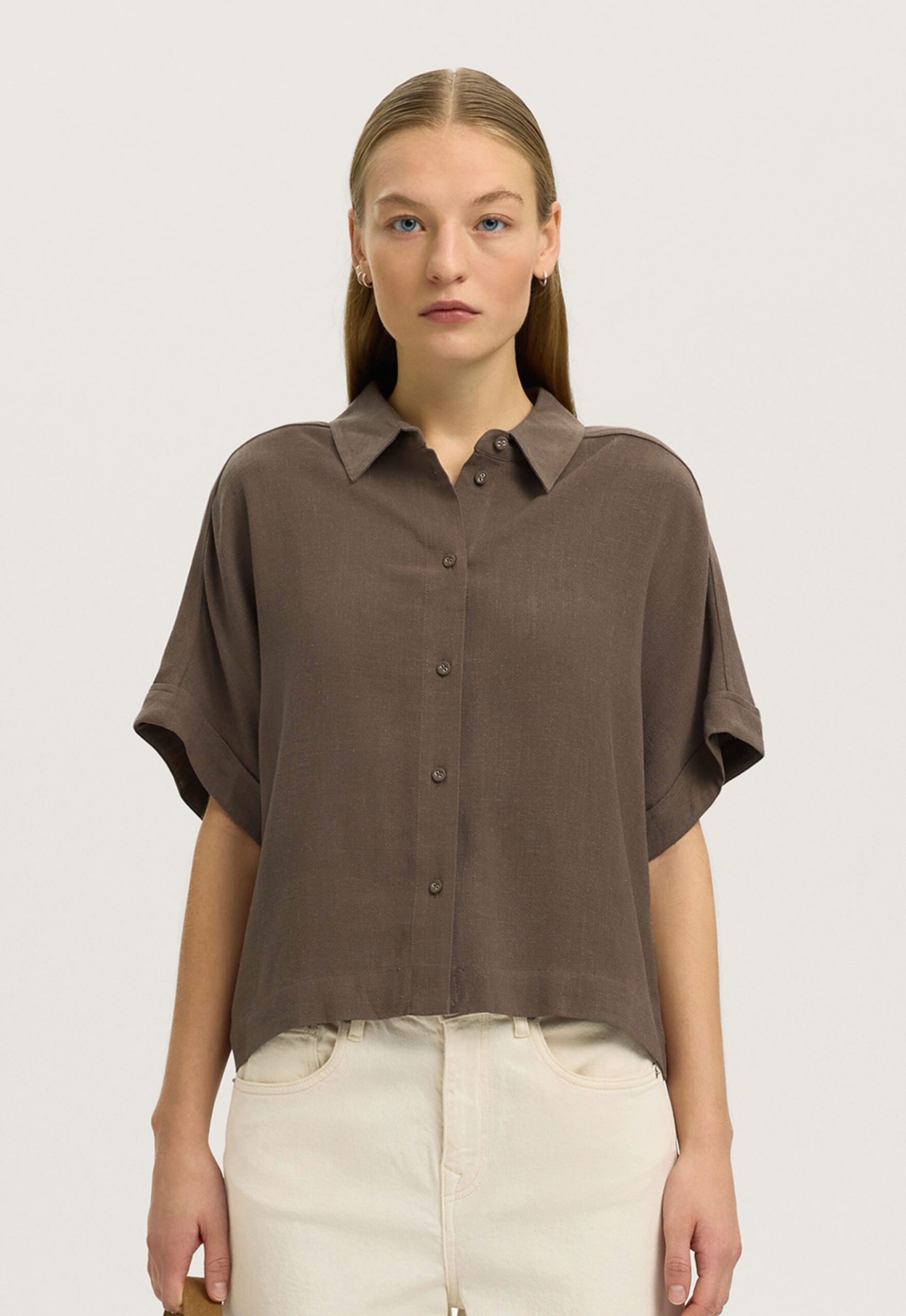 Dit is de 16093937 Viva Cropped Blouse van het merk Selected Femme. Deze blouse heeft een loose fit pasvorm en is gemaakt van een luchtige linnenmix, bestaande uit viscose lenzing ecovero (85%) en linnen (15%). Het ontwerp valt op door de stijlvolle cropped lengte, een soepele knoopsluiting en korte mouwen die zorgen voor een luchtig draaggevoel. Perfect voor warmere dagen en ideaal om een moderne, casual look te creëren.