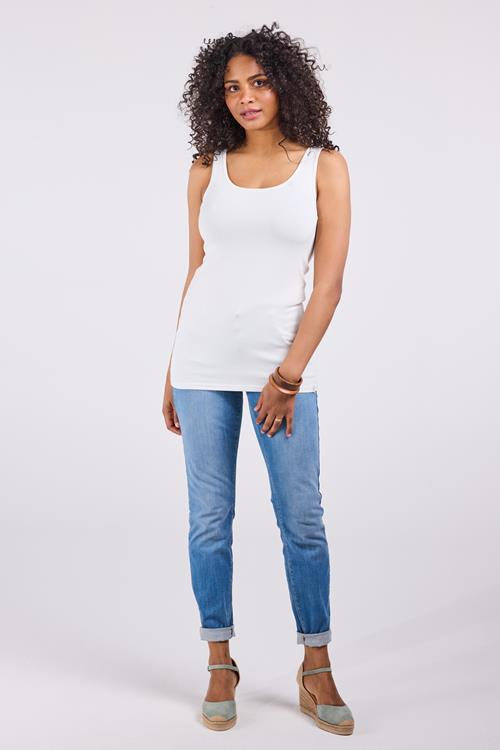 Singlet Ruby Snow White: Perfecte Basics voor Jouw Garderobe Met de Singlet Ruby Snow White ben je altijd klaar voor elk seizoen. Dit veelzijdige kledingstuk, met zijn frisse witte kleur en het tijdloze model, is een must-have in iedere kledingkast. De mouwloze constructie en de ronde hals maken het singlet zowel comfortabel als stijlvol, perfect voor zowel warme als koelere dagen. De regular fit zorgt ervoor dat het singlet altijd prettig zit, ongeacht de gelegenheid. Gemaakt van Hoogwaardige Stof Het Singlet Ruby Snow White is vervaardigd van 95% viscose en 5% elasthan. Deze combinatie zorgt voor een zachte en soepele stof die heerlijk aanvoelt op de huid. Viscose biedt ademend vermogen, terwijl elasthan de stof elastisch maakt voor extra draagcomfort. Hierdoor blijft het singlet mooi in vorm, wat bijdraagt aan een langdurige kwaliteit en fit. Stijladvies Dit singlet is een veelzijdige basic die zich uitstekend laat combineren met verschillende stijlen. Draag het met een mooie jeans voor een casual look, of combineer het met een rok voor een iets formelere uitstraling. De zachte kleur en het eenvoudige ontwerp geven je eindeloze mogelijkheden om te mixen en matchen met andere items uit je garderobe. Wasvoorschrift Wassen: Het is aan te raden om het singlet op 30 graden te wassen om de kwaliteit en kleur te behouden. Droogvoorschrift: Vermijd de droger om onnodige slijtage te voorkomen. Laat het singlet bij voorkeur aan de lucht drogen. Strijkvoorschrift: Mocht je willen strijken, doe dit dan op een lage temperatuur om de stof en elasticiteit te beschermen. Het Singlet Ruby Snow White is de perfecte aanvulling op jouw kledingcollectie, met kwaliteit en stijl als leidraad.