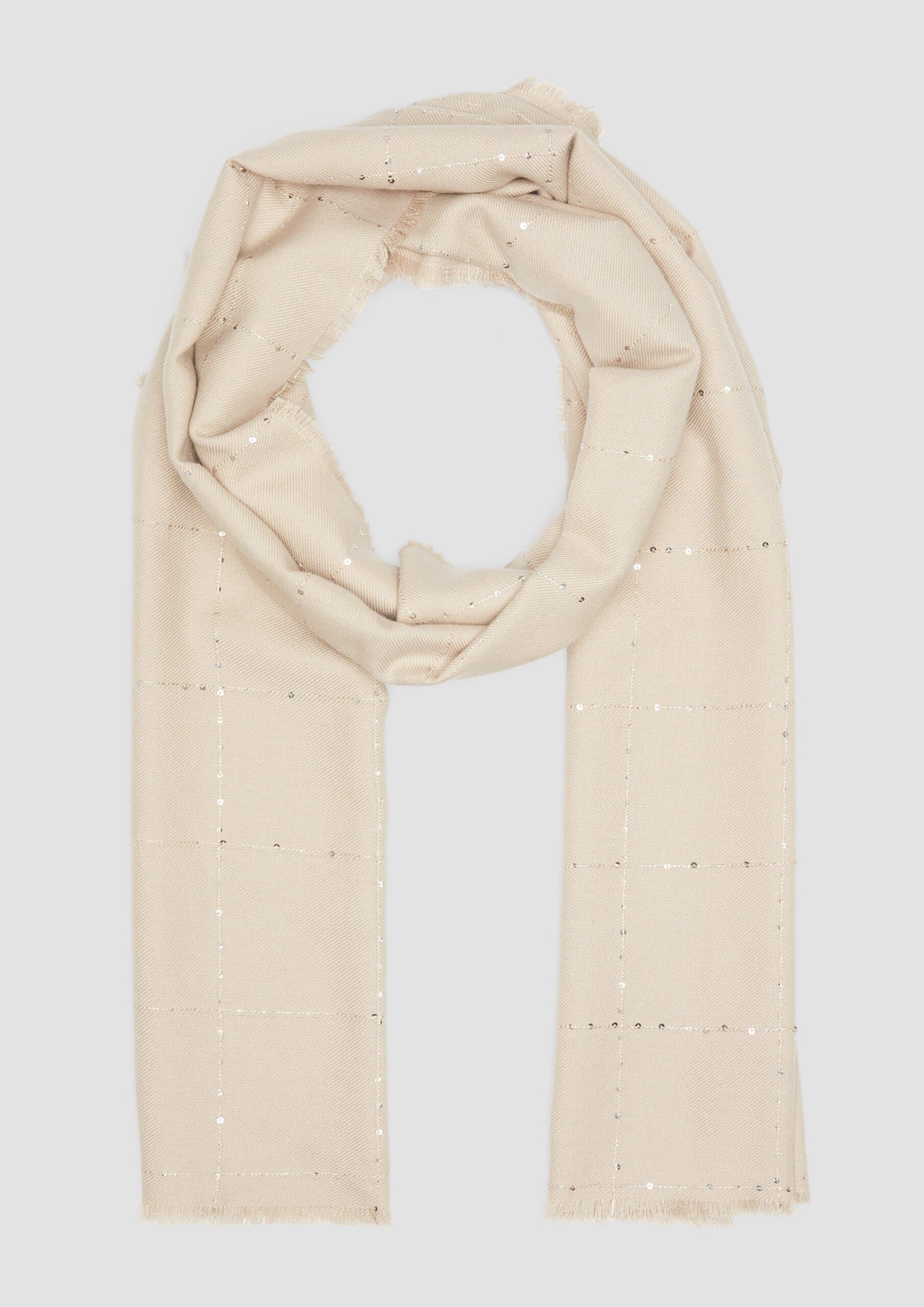 Fonkelende lovertjes veranderen deze vrouwelijke sjaal van viscoseblend in een glamoureuze metgezel. De fijne, lichtgewicht sjaal voegt een stijlvol accent toe aan elke outfit en laat je ensemble stralen.