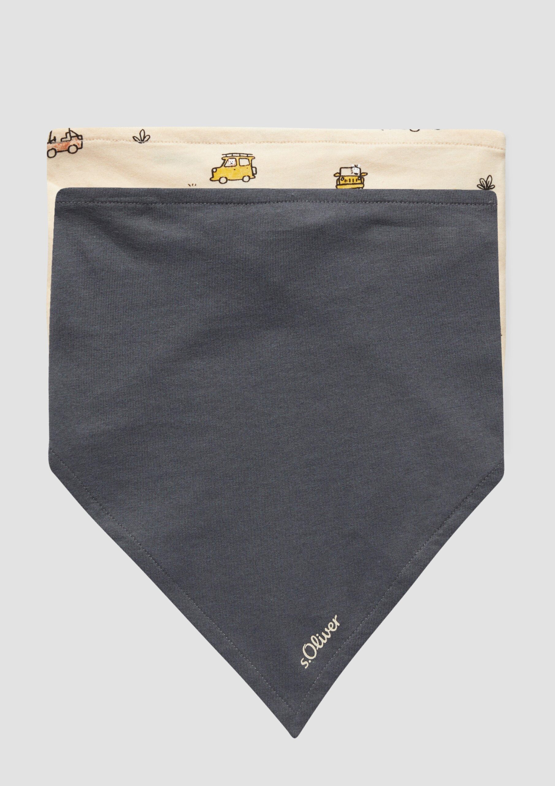Zacht en praktisch! Dit dubbele pak driehoekige slabbetjes van katoenen jersey heeft all-over prints en handige drukknoopsluitingen. Makkelijk aan en uit te trekken, perfect voor etenstijd en dagelijks gebruik. Houd je kleintje schoon en comfortabel met deze essentiële accessoires.