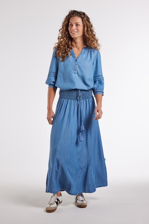 Magie van Comfort: Skirt Magic Denim mid blue Laat je betoveren door de Skirt Magic Denim mid blue, een rok die jouw kledingkast een boost geeft met stijl en comfort. In een klassieke blauwe tint en vervaardigd van 100% Tencel, biedt deze rok een loose fit die perfect is voor warme dagen en zwoele avonden. Dankzij de elastische tailleband met koord en de gesmockte details, zit hij altijd prachtig en comfortabel. Gemaakt van hoogwaardige stof Gemaakt van 100% Tencel, staat deze rok garant voor zachtheid en ademend vermogen. Tencel is een innovatief materiaal dat zijdezacht aanvoelt op de huid en bekend staat om zijn duurzaamheid. Het is een geweldige keuze voor milieubewuste fashionistas die geen concessies willen doen op stijl of comfort. Stijladvies Draag de Skirt Magic Denim mid blue met een eenvoudige top en je favoriete paar sneakers voor een relaxte, dagelijkse look. Combineer hem met een luchtige blouse en sandalen voor een zomerse avond uit. Deze veelzijdige rok past zich moeiteloos aan jouw persoonlijke stijl aan. Wasvoorschrift Wassen: Was de rok op 30 graden om de kwaliteit en kleur te behouden. Droogvoorschrift: Niet geschikt voor de droger. Hang hem liever op om te drogen. Strijkvoorschrift: Strijk op lage temperatuur voor het beste resultaat. Met de Skirt Magic Denim mid blue geniet je van een tijdloze stijl zonder in te boeten op comfort en duurzaamheid. Voeg deze blikvanger toe aan je kledingkast en ervaar een wereld van elegantie en gemak.