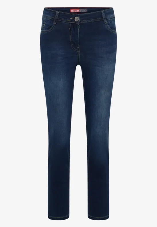 Met een Mid Waist en Slim Legs biedt de Toronto stijl jeans van CECIL voor dames een aansluitende pasvorm. De blauwe wassing en Stretch katoenmix maken het een veelzijdige basic voor dagelijks gebruik en vrije tijd.