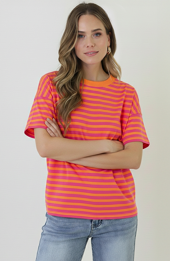 Striped T-Shirt Cotton Fuchsia Orange