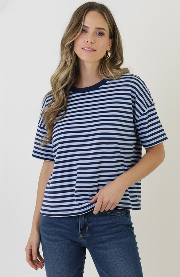 Striped T-Shirt Cotton Navy Baby Blue