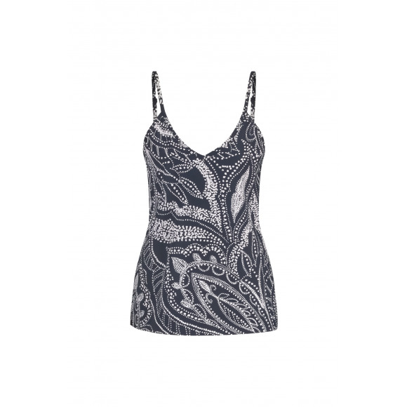 Top van het merk Studio Anneloes. Deze mouwloze top met V-hals is gemaakt van medium travelkwaliteit en uitgevoerd in een navy-witte dotprint. De verstelbare spaghettibandjes en licht getailleerde pasvorm zorgen voor een elegante, vrouwelijke uitstraling.