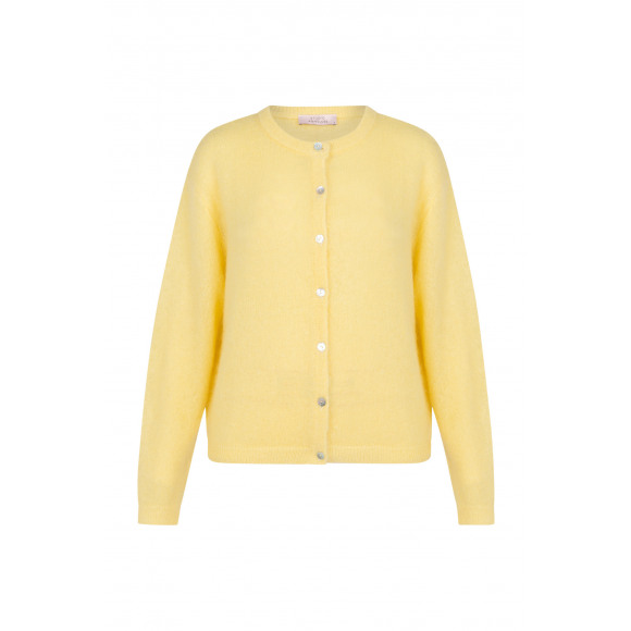 Vest van Studio Anneloes. Dit zachte, lichtgele vest is een echte blikvanger dankzij de luchtige, wollige structuur en de elegante, minimalistische afwerking. De regular fit en ronde hals geven het item een tijdloze uitstraling, terwijl de glanzende knopen en elastische boorden zorgen voor een vrouwelijke, verzorgde look. Extra fijn: het vest is aan twee kanten draagbaar, waardoor je in een handomdraai kunt variëren in stijl.