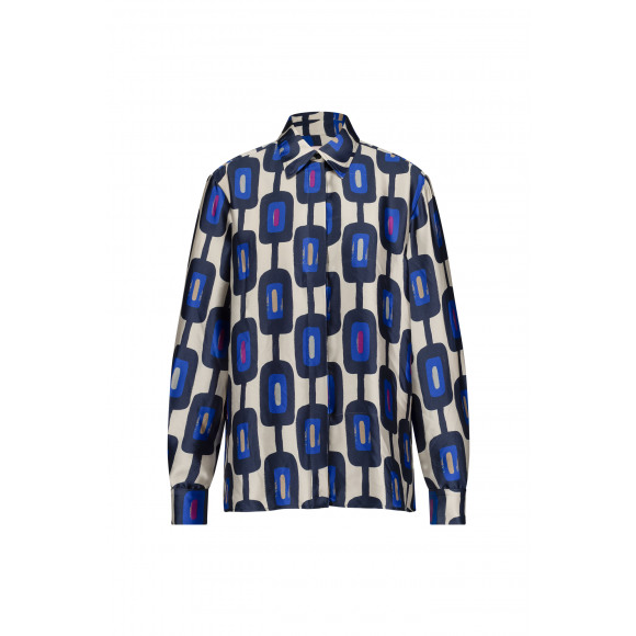 Satijn en blouse met allover print van het merk Studio Anneloes. Deze blouse heeft een kraagje, knoopsluiting en lange pofmouwen. Met een moderne grafische allover print biedt de blouse zowel een elegante als speelse uitstraling. Perfect voor elke gelegenheid waarbij je wilt opvallen!