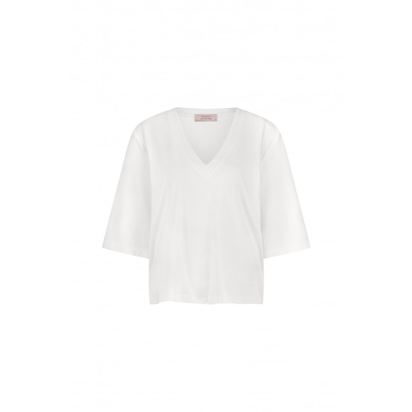 Losvallend t-shirt van Studio Anneloes met v-hals en mouwtjes tot op de elleboog.